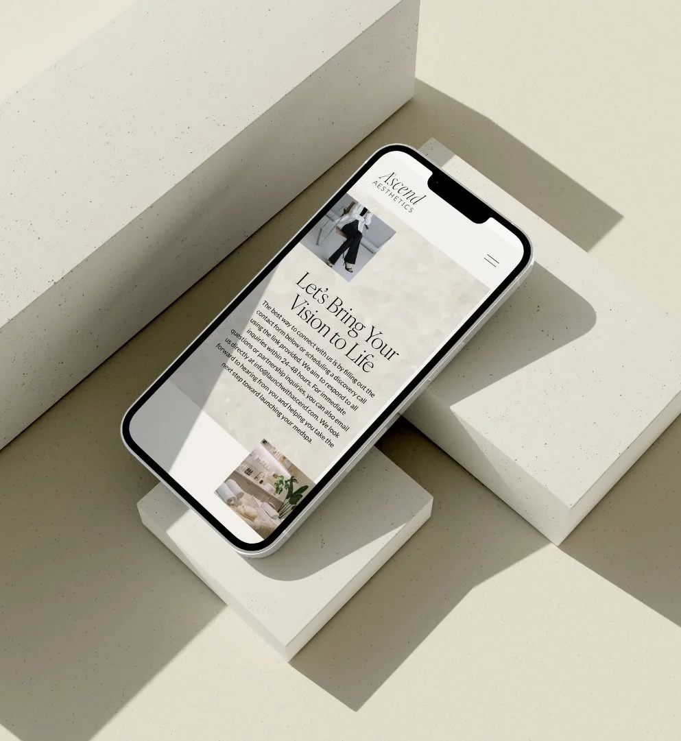 We created a refined brand identity and custom Squarespace website designed to reflect authority, confidence, and premium positioning. The visual direction balances medical credibility with elevated luxury — ensuring the brand appeals to serious medspa founders while also resonating with aesthetic clinics seeking high-end branding and web design.